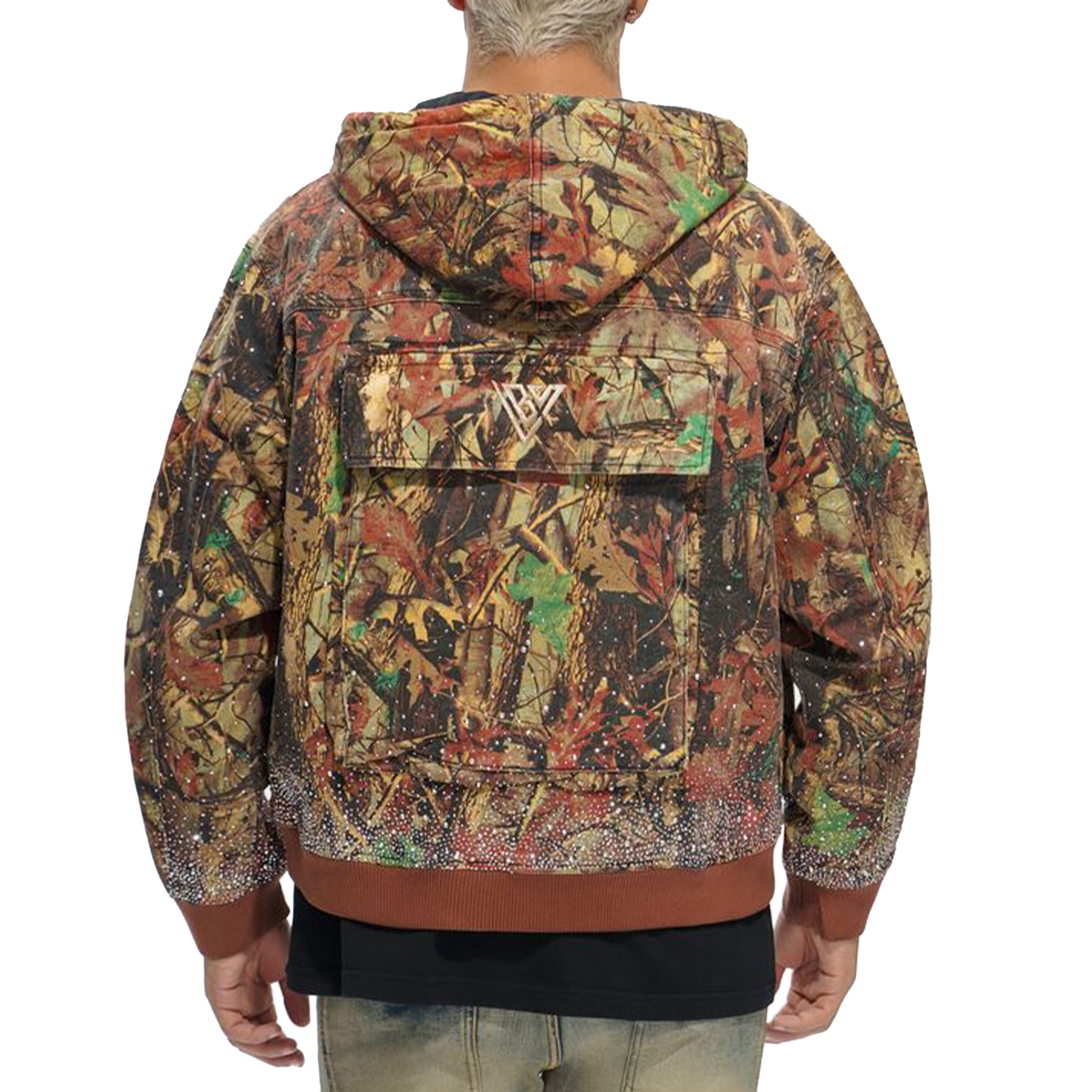 • The Valabasas “Stalker” Men’s Jacket delivers a bold streetwear aesthetic with its all-over camo print, multi-pocket utility layout, and signature crystal-style embellishments along the hem and sleeves. Designed with a relaxed fit and ribbed cuffs, it blends rugged outdoor inspiration with high-end detailing for a standout look. The piece features the iconic V-logo across the back flap pocket, giving it a premium finish that elevates any outfit. Available in both grey and real-tree colorways, this jacket pairs perfectly with stacked denim or matching Recon jeans. Grab the Valabasas “Stalker” Jacket today, available now at Future Rfrnce.