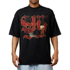 - The Saint Morta Highway Tee features a bold vintage-inspired graphic with gothic lettering and a striking eagle design across the front, delivering a rugged, Americana streetwear vibe. Finished in a washed black tone, this tee offers a worn-in look with a relaxed, oversized fit for everyday comfort. The back showcases clean Saint Morta Los Angeles branding for a minimal contrast. You can purchase this item at our store, Future Rfrnce.