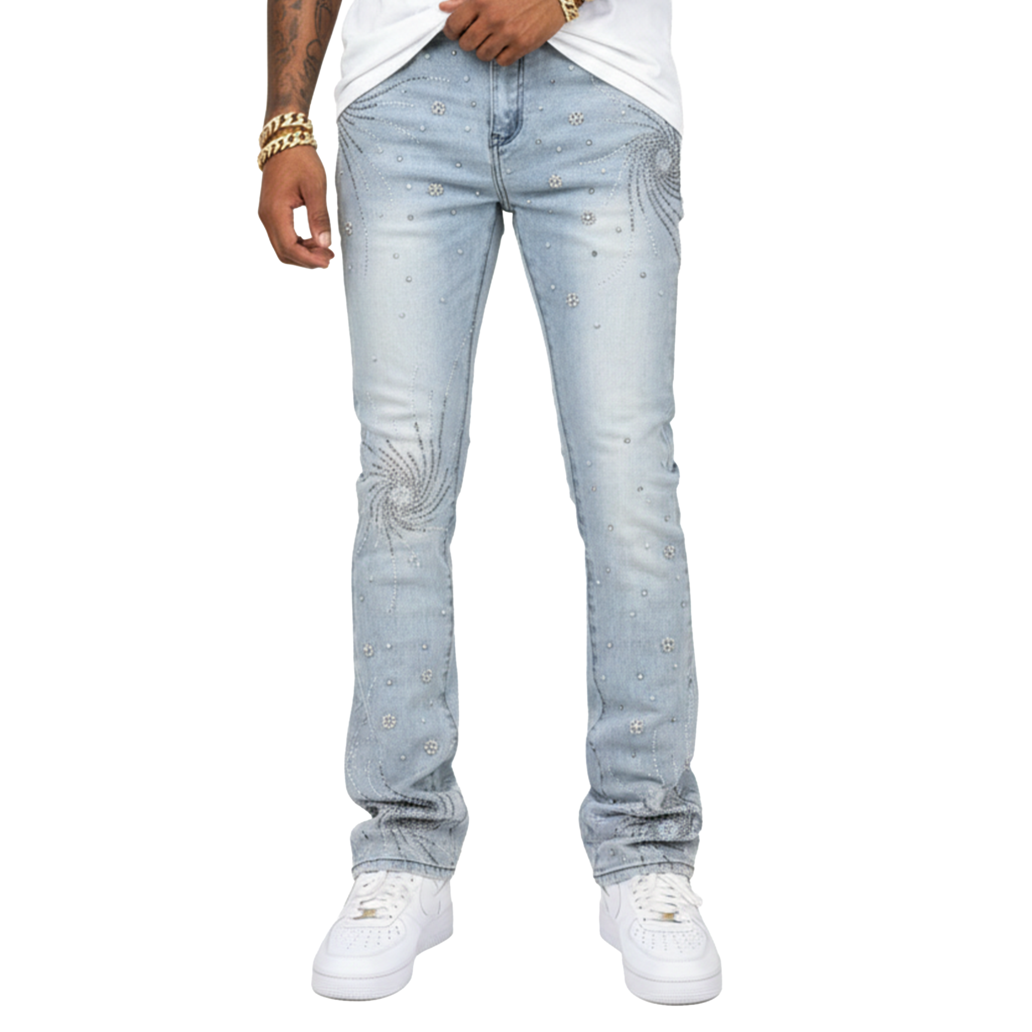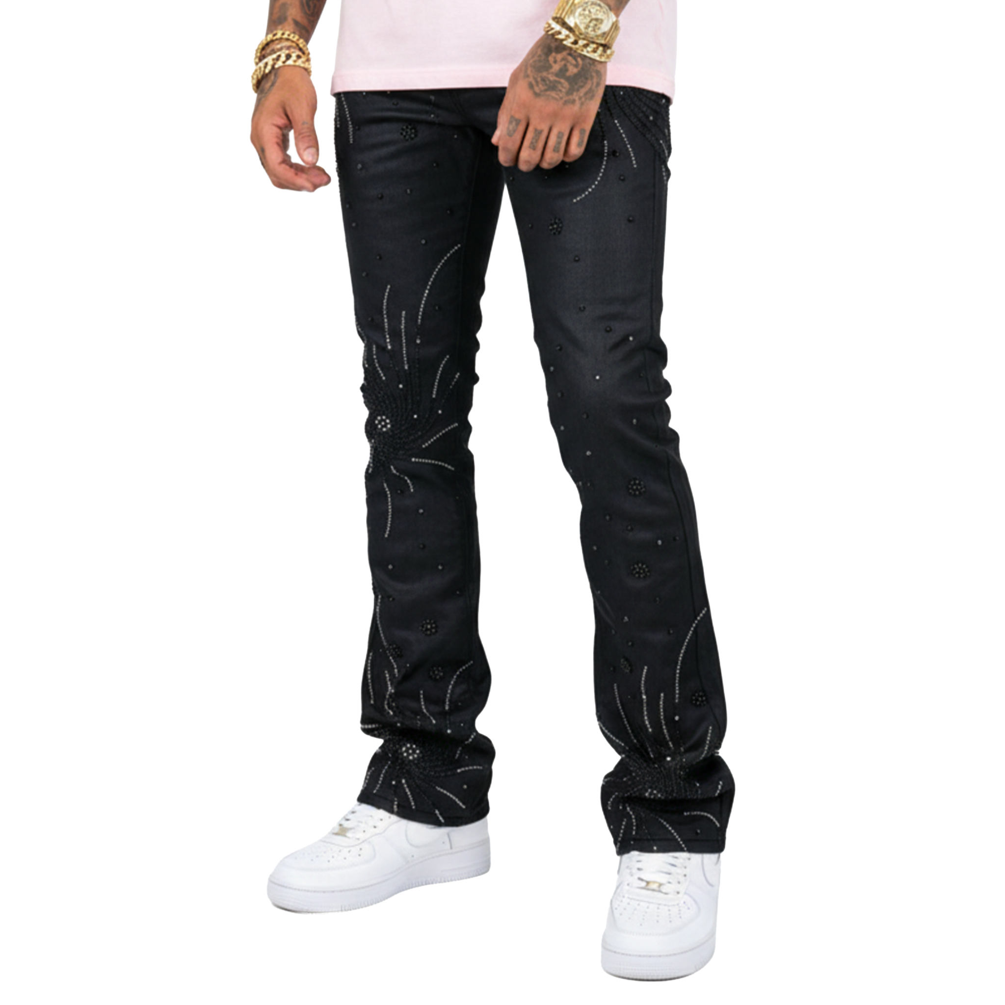 - The Vicious Embellished Rhinestone + Pearl Denim delivers standout luxury with intricate detailing and a premium stacked silhouette. Designed with carefully placed rhinestones and pearl accents, this pair creates a radiant effect that elevates classic denim into a true statement piece. The tailored slim fit and extended stacking provide a modern profile that complements sneakers or boots effortlessly. Crafted from high-quality stretch denim, these jeans offer both comfort and durability for everyday wear. Shop the Vicious Embellished Rhinestone + Pearl Denim now at Future Rfrnce to upgrade your rotation with elevated designer denim.