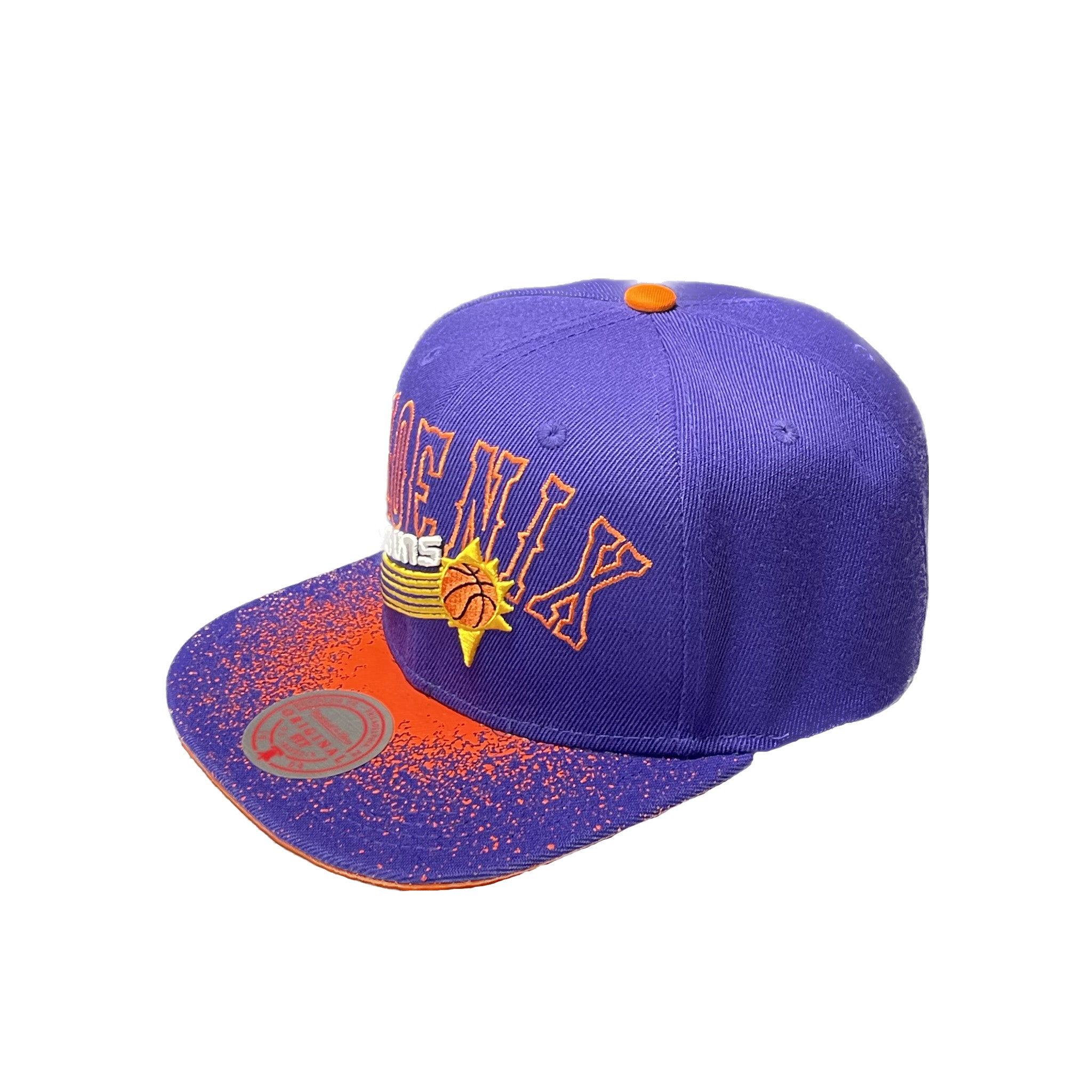 Show your team pride with the Mitchell & Ness Phoenix Suns Snapback, available at Future RFRNCE in Arizona. This stylish cap features a vibrant purple and orange colorway, capturing the essence of the Phoenix Suns. The front panels proudly display an embroidered Suns logo, ensuring you stand out as a dedicated fan.