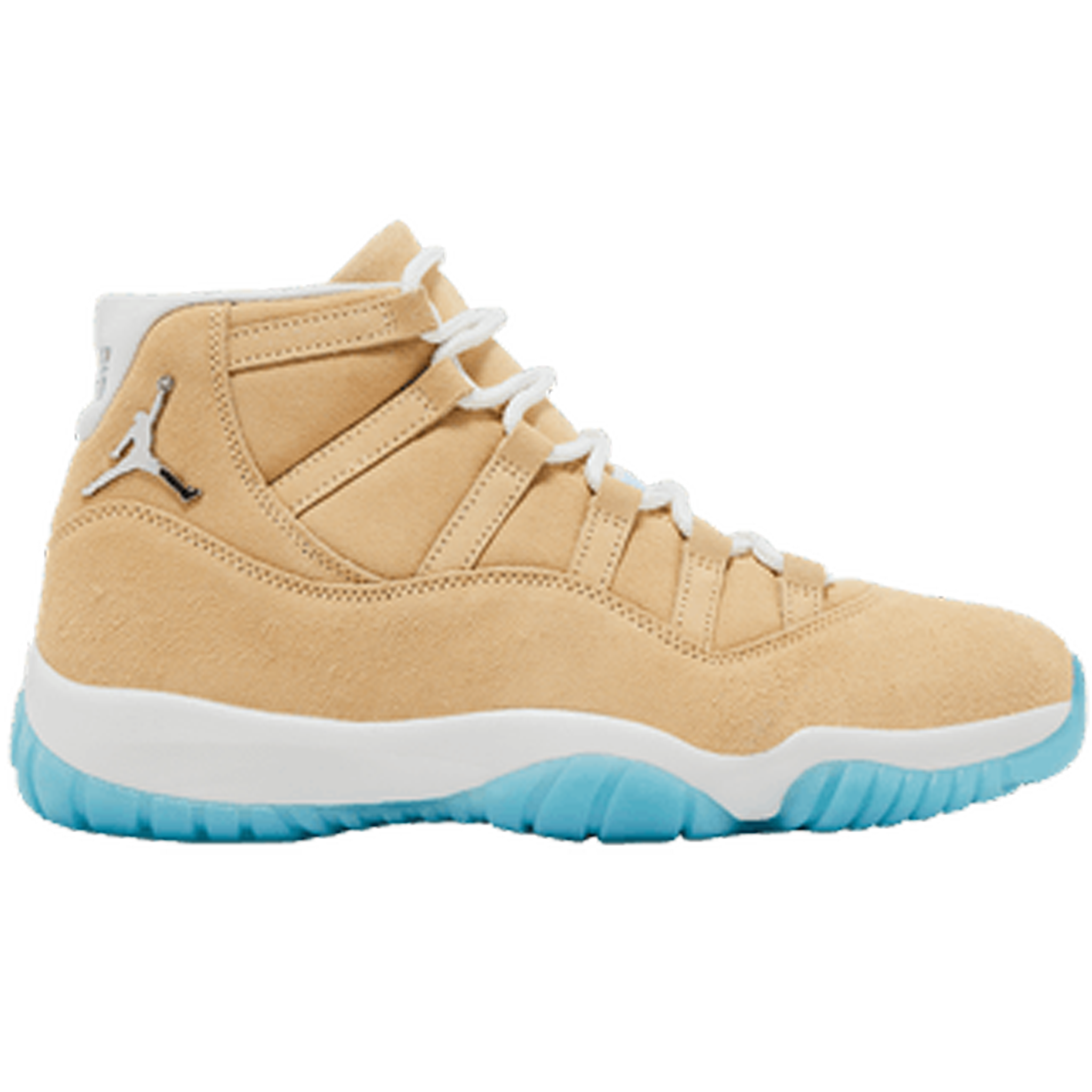 - The Air Jordan 11 Retro “Wheat” delivers a premium twist on a classic silhouette with a full nubuck upper in a rich tan finish. Clean white laces and a crisp midsole contrast perfectly against the translucent icy blue outsole, giving the sneaker a refined yet street-ready look. Signature Jordan 11 details like the sleek high cut shape and responsive cushioning keep this pair comfortable and timeless. Designed as a lifestyle-forward take on an iconic model, this colorway stands out while remaining easy to style. Available now at Future Rfrnce.