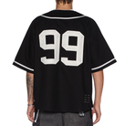 - The Ksubi Outfield Short Sleeve Jersey in black blends classic sportswear influence with modern street style. Designed with bold contrast piping, snap button closure, and signature Ksubi script across the chest, this jersey delivers a standout look from every angle. The oversized fit and lightweight construction make it easy to layer or wear solo for a clean, athletic vibe. Finished with a large “99” graphic on the back for added edge and statement appeal. Available now at Future Rfrnce.