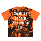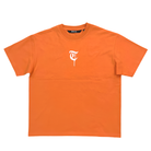 The Trnchs Hellbound Tee commands attention with its bold, unapologetic aesthetic. Crafted in a striking orange hue, the front features a minimalist gothic “TCH” logo, while the back explodes with a powerful graphic of armed figures layered beneath the phrase “Built in heaven, forged in hell.” This juxtaposition of divine and infernal themes captures Trnchs’ fearless design DNA. Made from premium cotton with a boxy fit, it’s built for statement wear and effortless edge. Available now at Future Rfrnce.